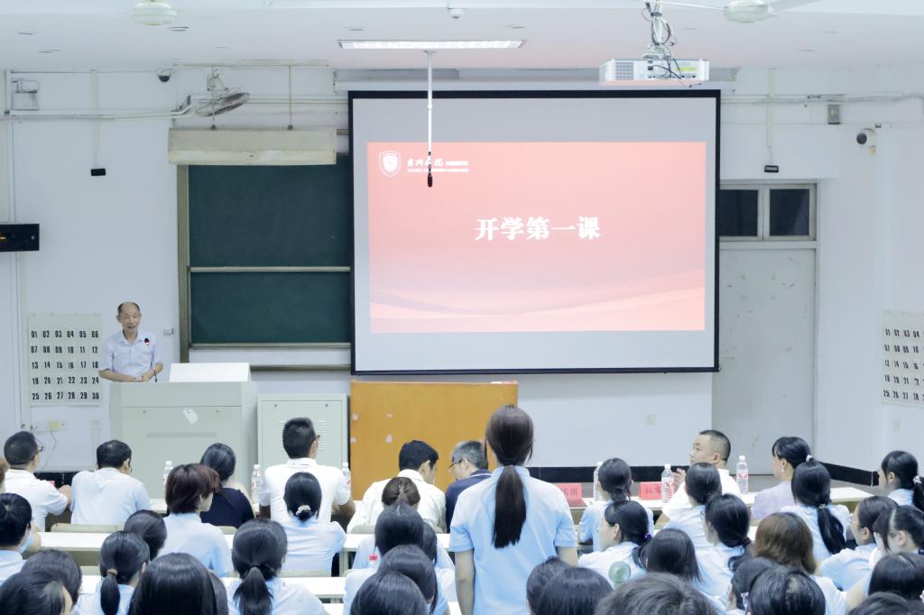 最后,李涛为新生们展开了开学第一堂思政课。他强调了举办新生见面会的目的,明确提出对新生的要求,并引用习近平总书记的回信,以朱生豪等外语人才为典范,勉励同学们砥砺前行,把个人理想融入国家和社会发展。