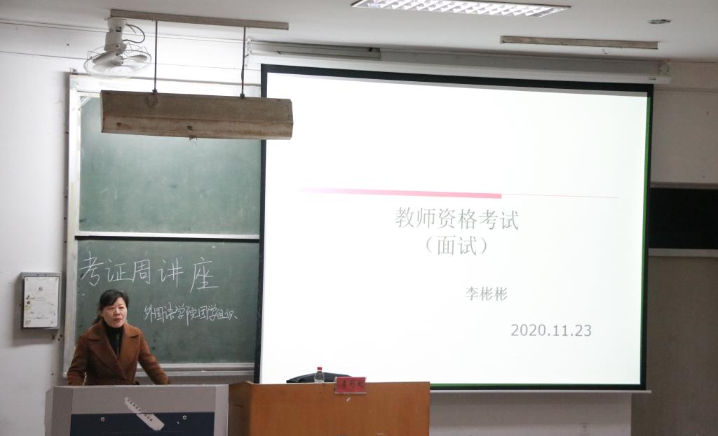 教师资格考试讲座由人人妻人人爽英语教育系主任李彬彬主讲,李彬彬老师从面试类型、面试流程、注意事项等方面展开介绍,同时分享了面试评分细则。