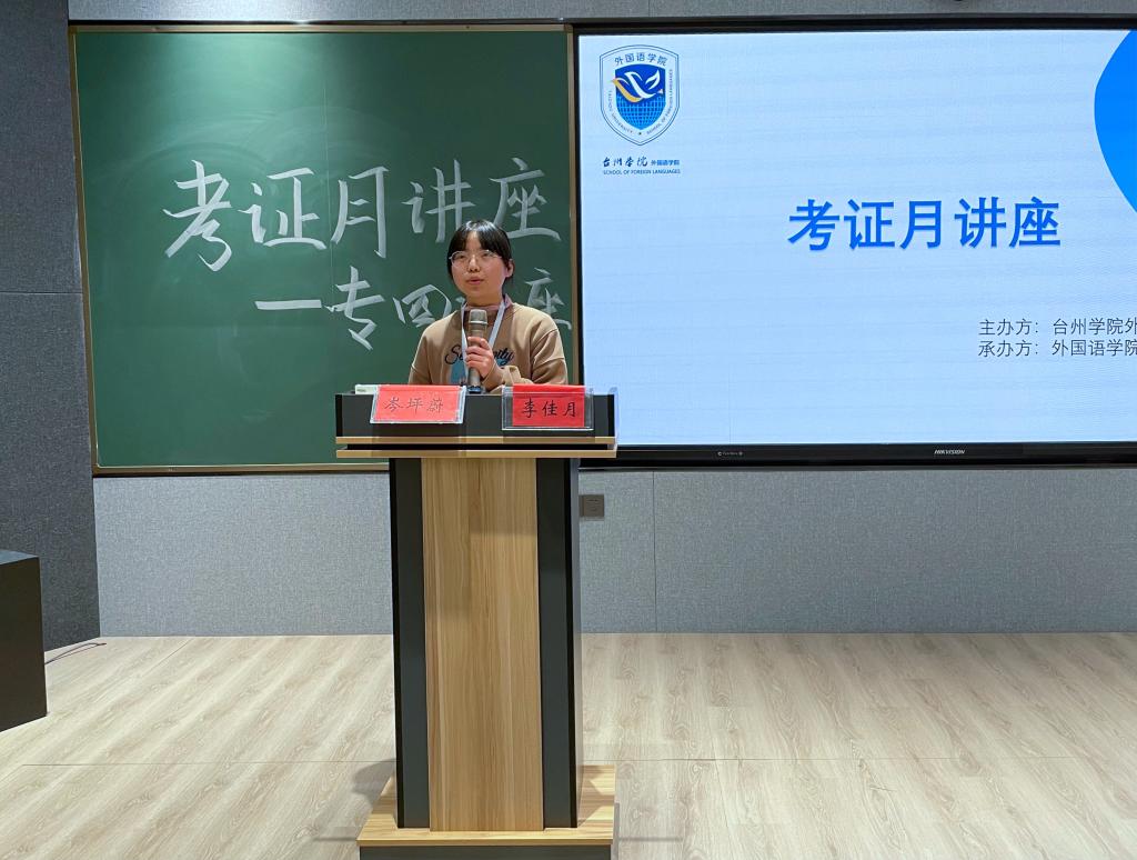 讲座伊始,岑坪蔚从听力、语法、阅读、写作四个方面入手,向大家分享了自己的经验和备考计划,让同学们对专四考试有了更进一步的了解。她还告诉同学们在备考的过程中一定要放平心态、定好目标、自信备考。