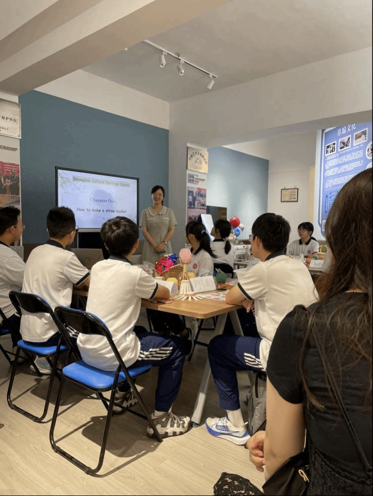 听证会上,浙江凯佩诗雅工贸有限公司总经理陈真介绍了开放非遗草编课程的初心、现状与深远意义,表达了传承非遗草编技艺,弘扬中华文化的美好期许。椒江区第二中学副校长李彩青肯定了此类课程与椒江二中育人理念的一致性及其对学生德智体美劳全面发展的意义。椒江二中英语教师周馨亦为十多位二中同学带来了这节“非同一般的英语手工课”。