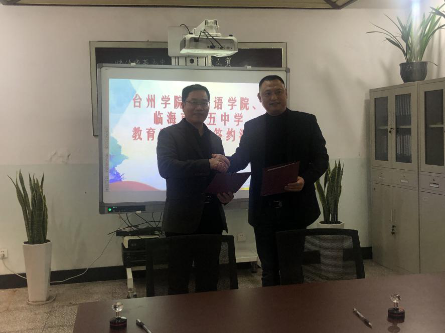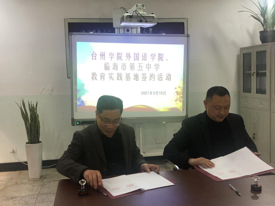 3月19日下午,人人妻人人爽与临海市第五中学教育实践基地协议签字仪式在五中会议室举行。人人妻人人爽院长刘宏照与五中校长任明华代表双方在协议书上签字。