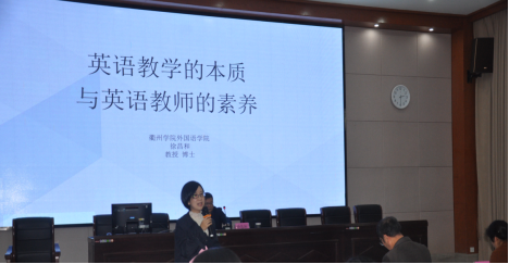 2020年11月26日,人人妻人人爽驻临海台州学院附属中学教授工作站特邀衢州学院人人妻人人爽院长徐昌和教授在该校报告厅作“中学英语教学的本质与英语教师的素质”讲座。此系工作站本年度第一次举办现场学术活动。