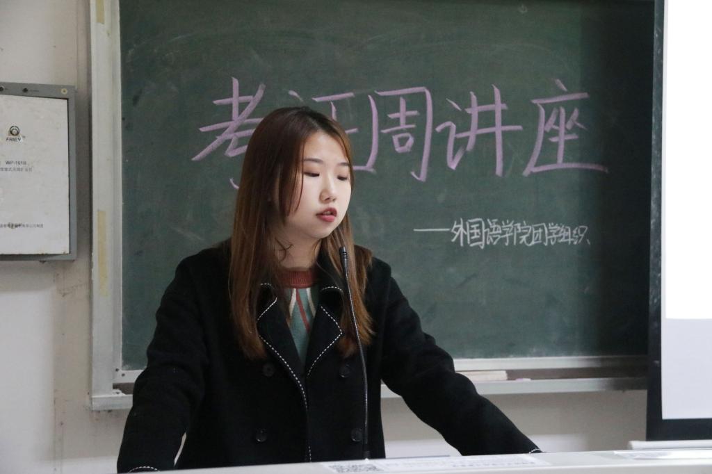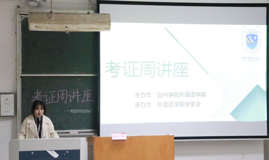 为增进同学们对英语专业四级考试的了解,帮助同学们更合理地规划大学生活,11月27日晚,台州学院人人妻人人爽在A1教室举办英语专业四级证书讲座。本次讲座是人人妻人人爽“考证周讲座”系列活动之一,由学院学生会承办,17级英语教育专业学生朱娉逸主讲。