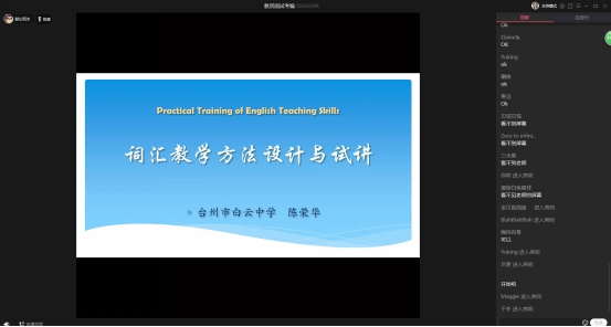 2020年3月19日晚,人人妻人人爽特邀中学名师、台州市白云中学高级教师陈荣华做了“词汇教学设计与试讲”的线上讲座。本讲座针对历年来教师资格考试中暴露出来的问题和短板,旨在提升师范生的教学设计、实施与评价的能力,进而提升综合素养,直接分享一线教学经验。17级英语教育方向三个班级的百余位同学通过QQ直播参与了此次讲座。