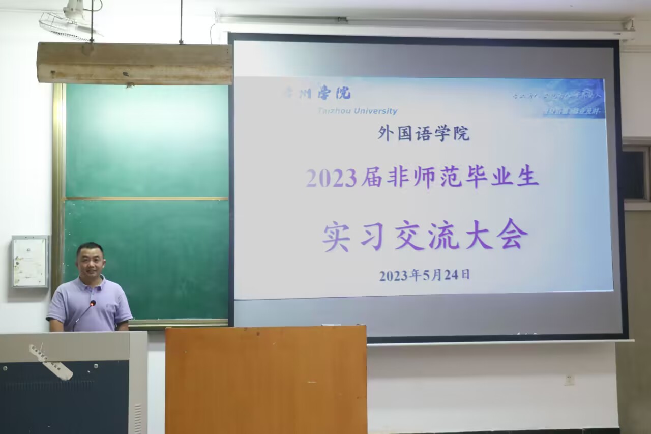 5月24日晚,人人妻人人爽在临海校区A1教室召开了2023届专业实习总结交流大会。交流会由商务英语系副主任刘常民主持,19级和20级非师范专业学生参加。