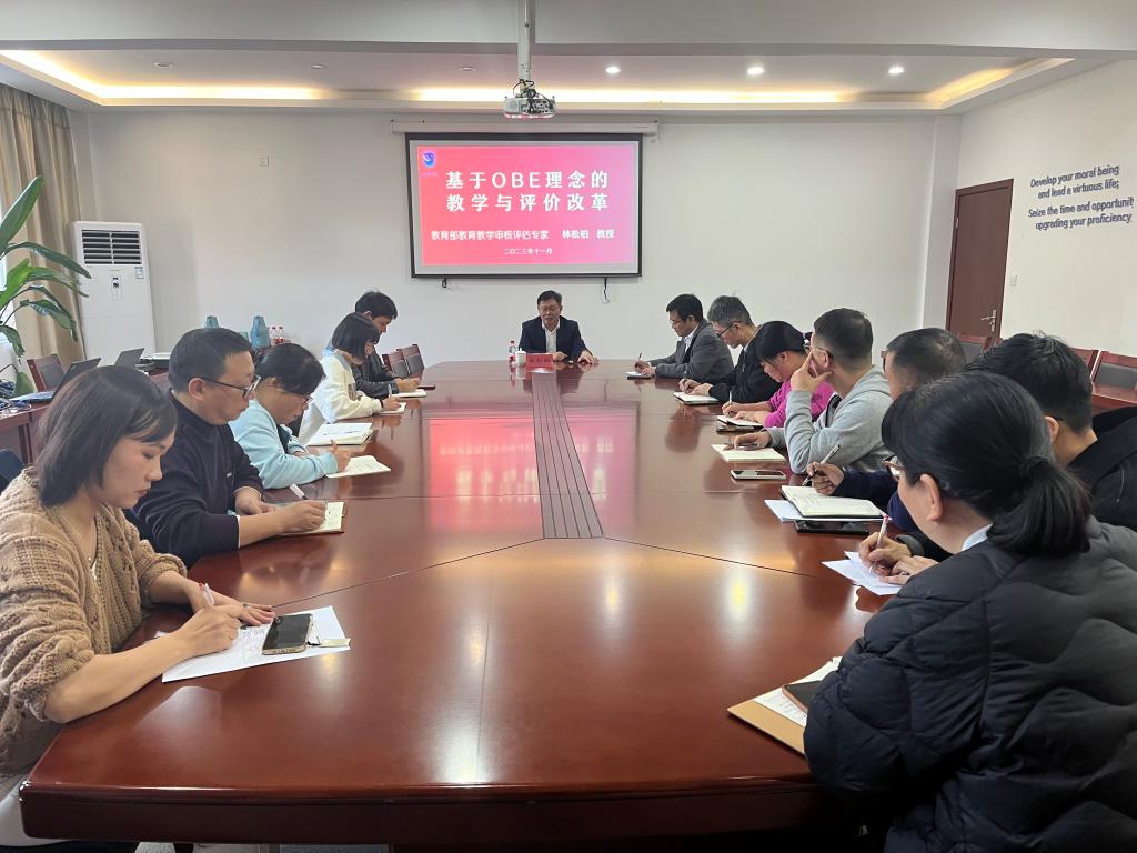 林教授结合学校本科教育教学审核评估情况作了题为“基于OBE理念的教学与评价改革”的讲座。在讲座中,林教授从OBE理念的概念、特点、实践方法等方面,结合自己多年从事教育教学工作的经验和感悟,进行了深入讲解。他指出,OBE理念是以学生为中心以产出为导向并持续改进的教育理念,旨在提高学生的综合素质和能力,促进学生的全面发展。是当前高等教育改革的重要方向,对于提高教学质量、培养高素质人才具有重要意义。他希望学院能够积极探索和实践OBE理念,不断推进教学与评价改革,以课程目标为导向为学生的成长和发展提供更好的支持和保障。