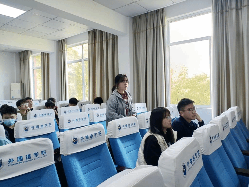 在互动环节,到场的学生就“MTI是否还有未来?”“课堂译文质量评估与职场译文质量评估有什么区别?”“如何选择MTI报考院校?”等问题向主讲人请教,主讲人解疑释惑,一一回答。讲座结束前,主讲人谢亮亮为到场的师生送上他的祝愿:让热爱者入行,让盲从者止步;筑梦为马,译路畅通。