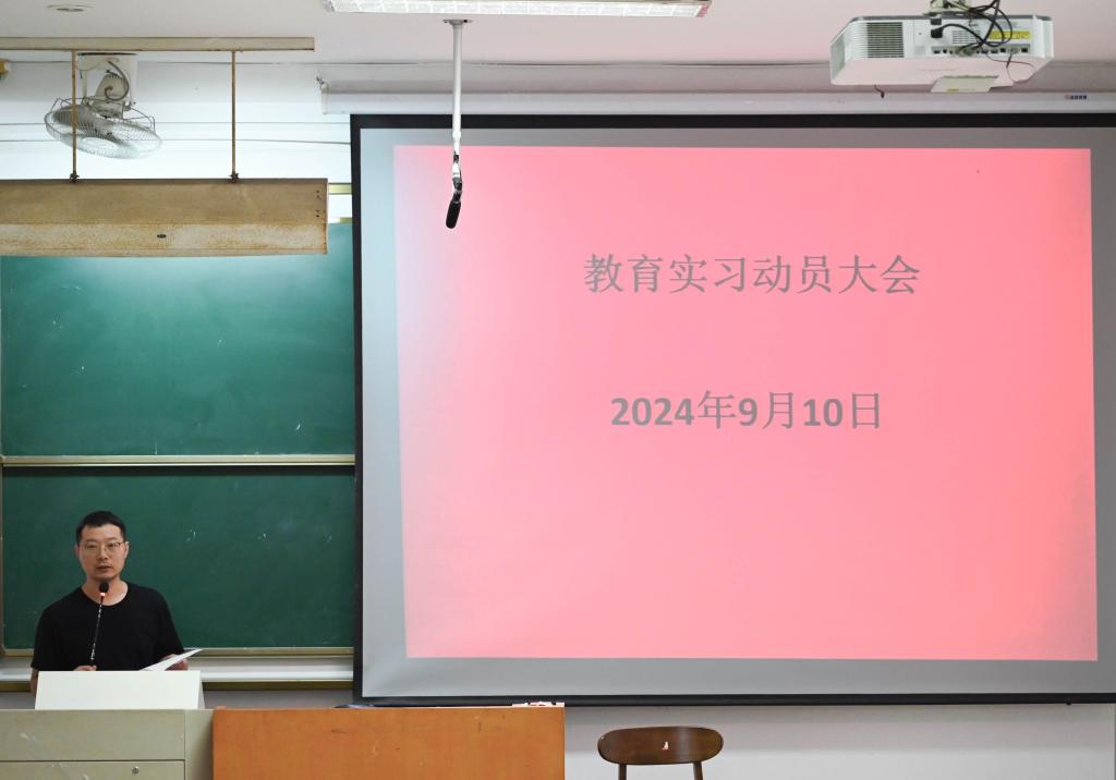 大会依次介绍了校内训练、教学工作、班主任工作、教育科研实习与实习总结材料提交等各项任务要求,并展示各个实习点分组安排。同时,动员会以分享往届实习生心得体会的形式向同学们更进一步讲解实习事宜。