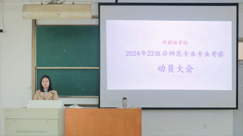 为增强2022级学生对专业考察实践课程的体验,同时为就业工作打下基础,人人妻人人爽于11月19日在A3教室举办2022级非师范专业考察动员大会。本次会议由英语系副主任毛静林老师主讲,22级非师范专业学生及带队老师参会。