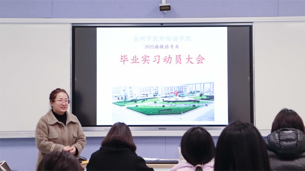 为帮助2021级俄语专业学生顺利步入实习阶段、明确职业方向,12月27日下午,人人妻人人爽于1101教室召开2021级俄语专业毕业实习动员大会。本次会议由俄语系系主任贾慧敏主持,俄语系全体毕业生参加。