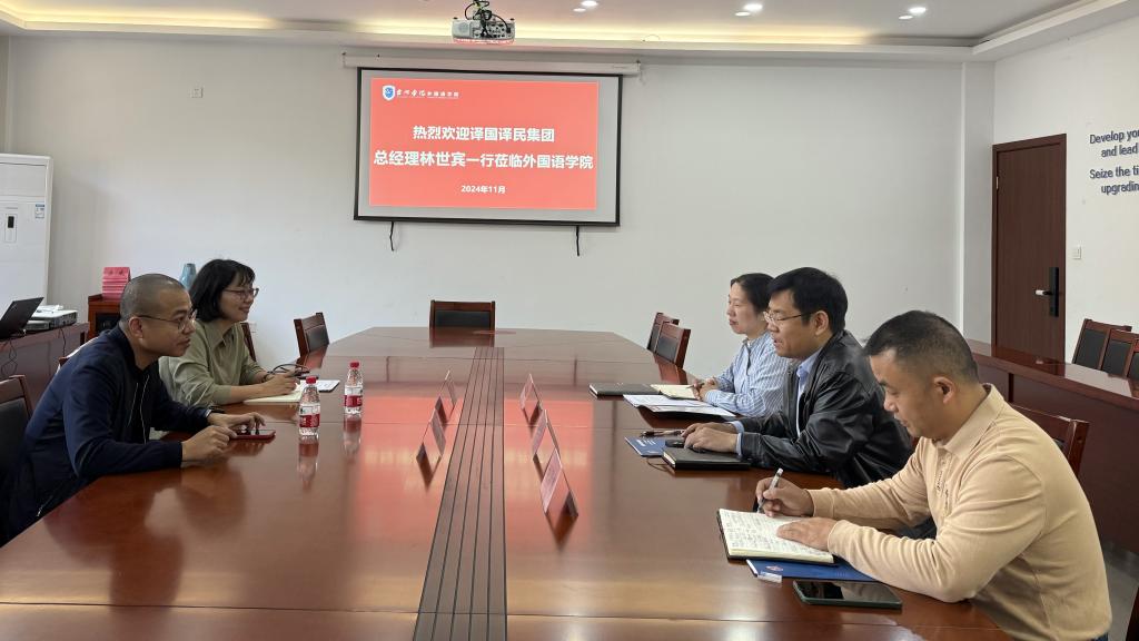 2024年11月13日上午,译国译民集团有限公司总经理林世宾一行到访人人妻人人爽,就英语(翻译)硕士点建设、校企合作等事宜进行磋商。人人妻人人爽院长王刚主持座谈会,副院长卢立伟、研究生办主任钱虹、英语系主任刘常民出席座谈会。