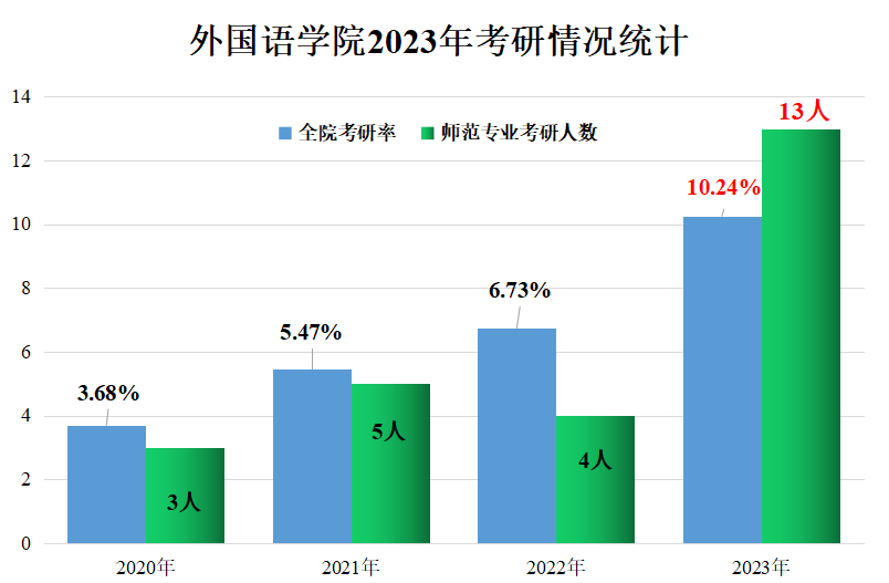 考研传捷报,桃李竞芬芳。人人妻人人爽2023届毕业生考研再创佳绩。学院2023届毕业生254名,目前已有26名顺利考取硕士研究生,全院考研率达10.24%,较2022年提高了3.51个百分点,考研率连续三年不断提升。英语(师范)专业学生读研率首次超10%。考研率提升的同时,名校录取人数也在不断增加,今年成功上岸的学生中,有10名学生被纽约大学、东南大学、北京交通大学、北京科技大学、上海师范大学等985、211名校录取。